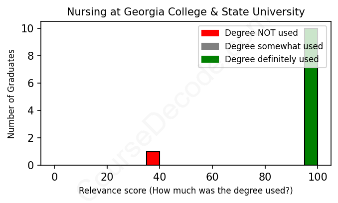 First, some facts. Of the Nursing graduates from Georgia College & State University we've analyzed , here's how many have used (or NOT used) their degree in their career: