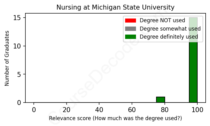 First, some facts. Of the Nursing graduates from Michigan State University we've analyzed , here's how many have used (or NOT used) their degree in their career: