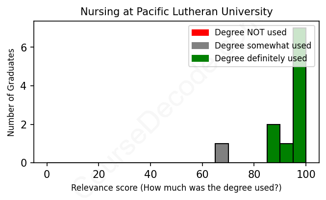 First, some facts. Of the Nursing graduates from Pacific Lutheran University we've analyzed , here's how many have used (or NOT used) their degree in their career: