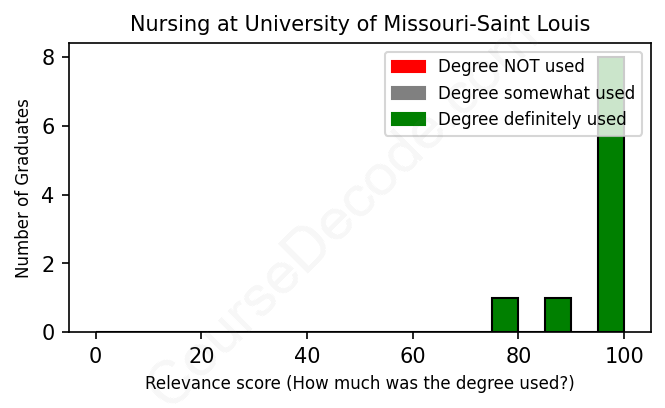 First, some facts. Of the Nursing graduates from University of Missouri-Saint Louis we've analyzed , here's how many have used (or NOT used) their degree in their career: