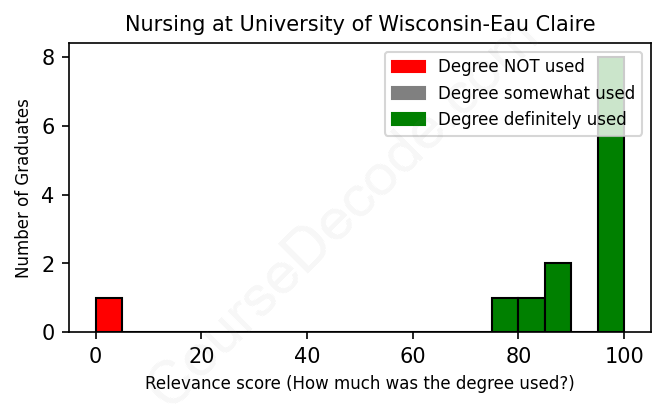 First, some facts. Of the Nursing graduates from University of Wisconsin-Eau Claire we've analyzed , here's how many have used (or NOT used) their degree in their career: