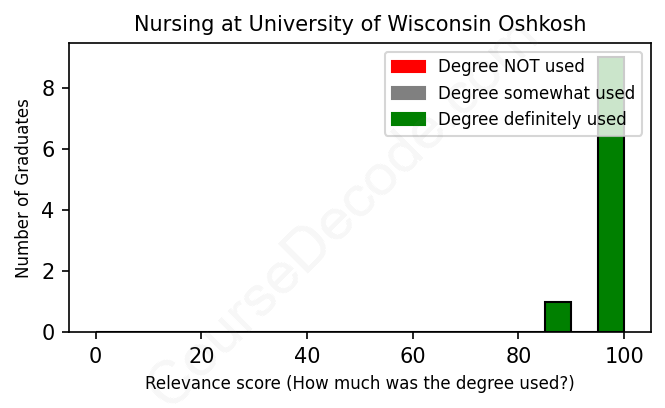 First, some facts. Of the Nursing graduates from University of Wisconsin Oshkosh we've analyzed , here's how many have used (or NOT used) their degree in their career: