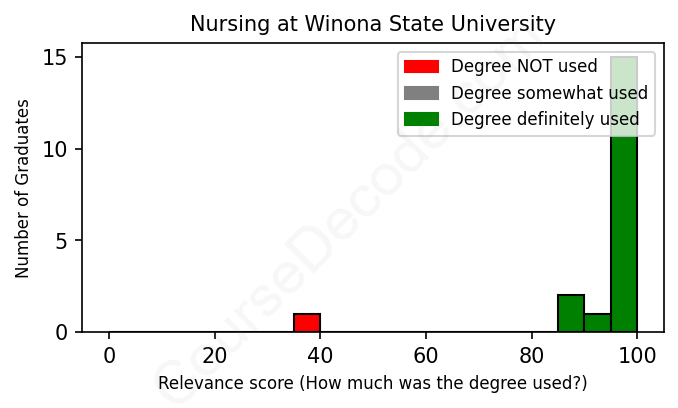 First, some facts. Of the Nursing graduates from Winona State University we've analyzed , here's how many have used (or NOT used) their degree in their career: