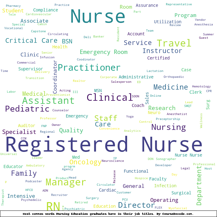 Here is a visual representation of the most common words in job titles for Nursing Education graduates: