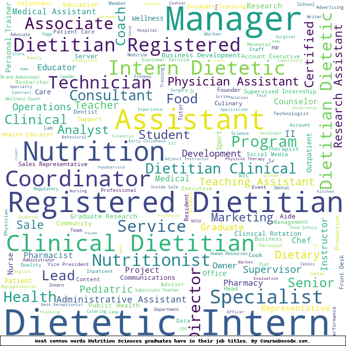 Here is a visual representation of the most common words in job titles for Nutrition Sciences graduates: