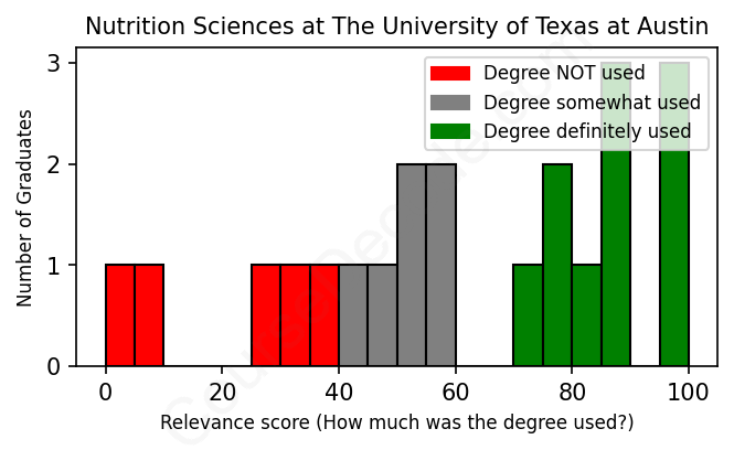 First, some facts. Of the Nutrition Sciences graduates from The University of Texas at Austin we've analyzed , here's how many have used (or NOT used) their degree in their career: