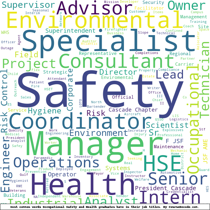 Here is a visual representation of the most common words in job titles for Occupational Safety and Health graduates: