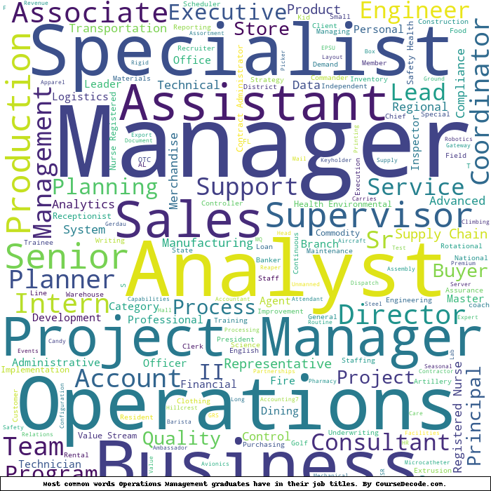 Here is a visual representation of the most common words in job titles for Operations Management graduates: