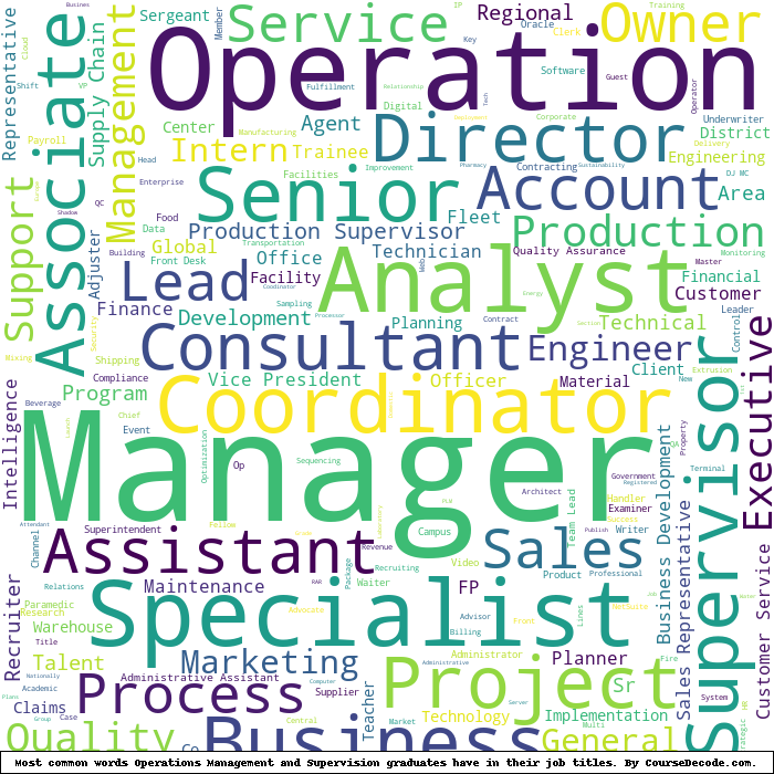 Here is a visual representation of the most common words in job titles for Operations Management and Supervision graduates: