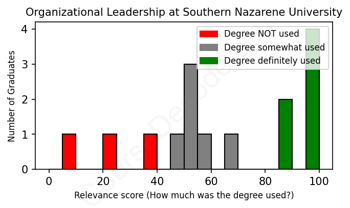First, some facts. Of the Organizational Leadership graduates from Southern Nazarene University we've analyzed , here's how many have used (or NOT used) their degree in their career: