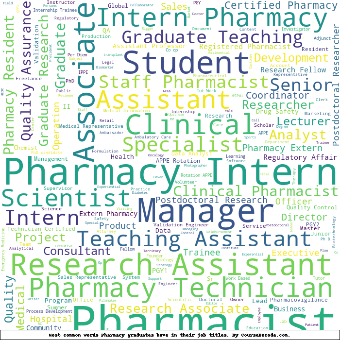 Here is a visual representation of the most common words in job titles for Pharmacy graduates: