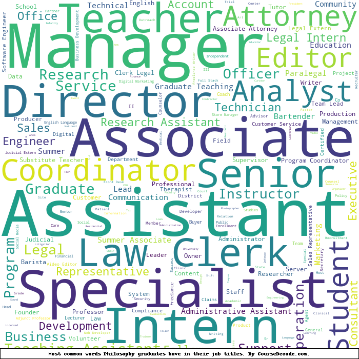 Here is a visual representation of the most common words in job titles for Philosophy graduates: