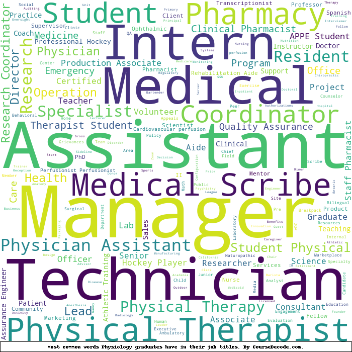 Here is a visual representation of the most common words in job titles for Physiology graduates: