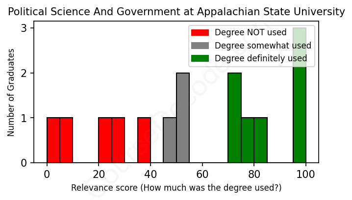 First, some facts. Of the Political Science And Government graduates from Appalachian State University we've analyzed , here's how many have used (or NOT used) their degree in their career: