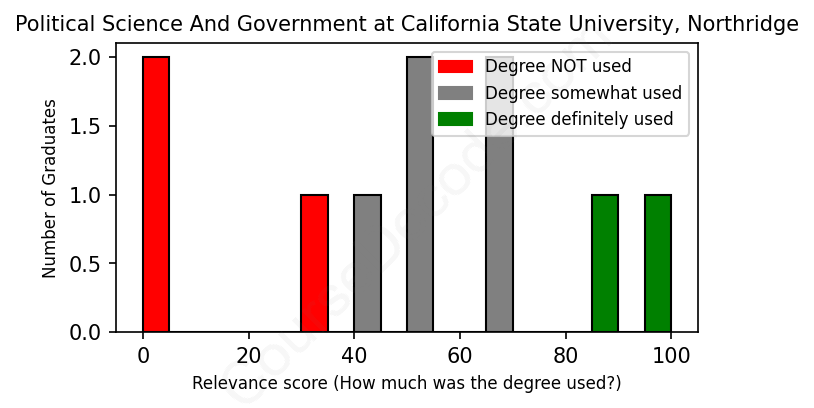 First, some facts. Of the Political Science And Government graduates from California State University, Northridge we've analyzed , here's how many have used (or NOT used) their degree in their career: