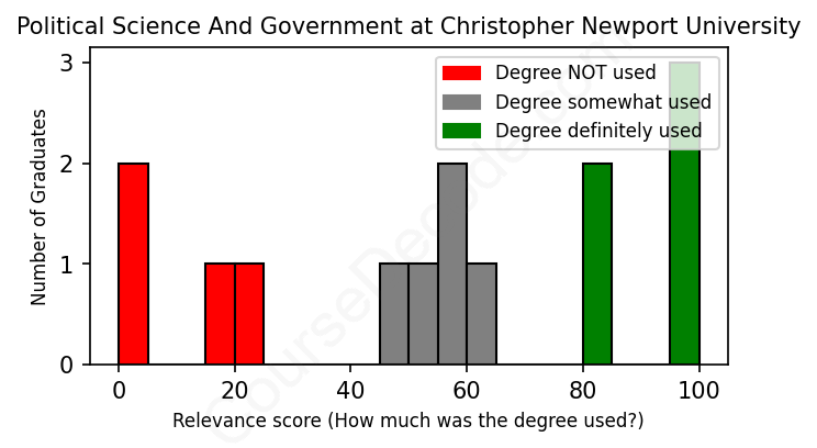 First, some facts. Of the Political Science And Government graduates from Christopher Newport University we've analyzed , here's how many have used (or NOT used) their degree in their career: