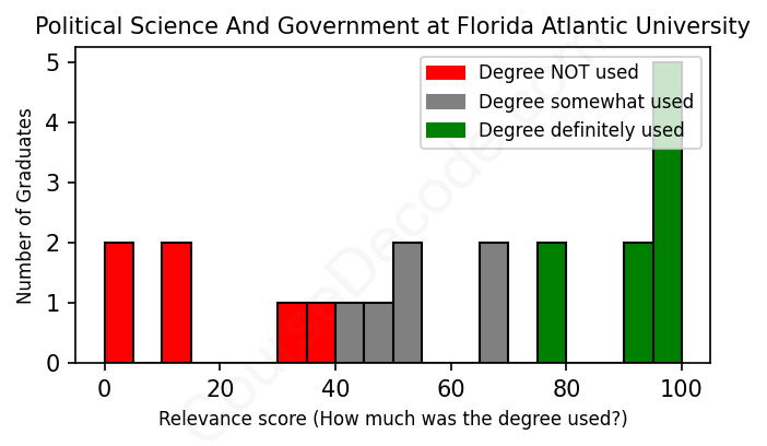 First, some facts. Of the Political Science And Government graduates from Florida Atlantic University we've analyzed , here's how many have used (or NOT used) their degree in their career: