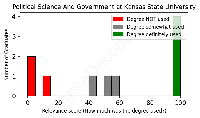 First, some facts. Of the Political Science And Government graduates from Kansas State University we've analyzed , here's how many have used (or NOT used) their degree in their career: