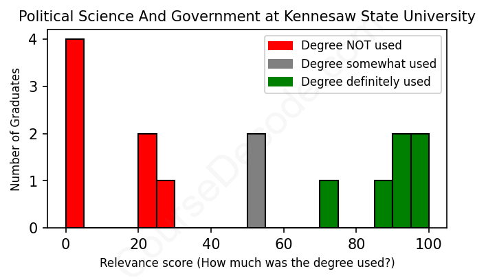 First, some facts. Of the Political Science And Government graduates from Kennesaw State University we've analyzed , here's how many have used (or NOT used) their degree in their career: