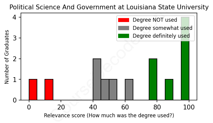 First, some facts. Of the Political Science And Government graduates from Louisiana State University we've analyzed , here's how many have used (or NOT used) their degree in their career: