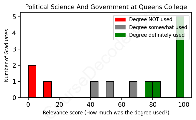 First, some facts. Of the Political Science And Government graduates from Queens College we've analyzed , here's how many have used (or NOT used) their degree in their career: