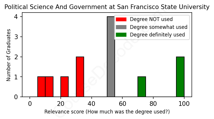 First, some facts. Of the Political Science And Government graduates from San Francisco State University we've analyzed , here's how many have used (or NOT used) their degree in their career: