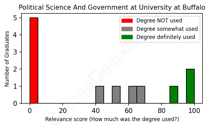 First, some facts. Of the Political Science And Government graduates from University at Buffalo we've analyzed , here's how many have used (or NOT used) their degree in their career: