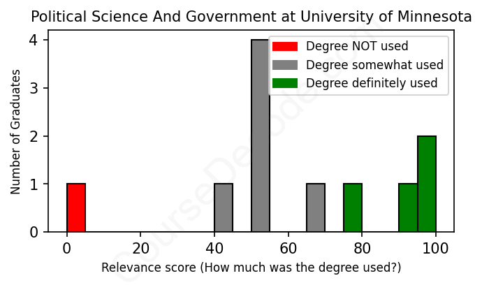 First, some facts. Of the Political Science And Government graduates from University of Minnesota we've analyzed , here's how many have used (or NOT used) their degree in their career: