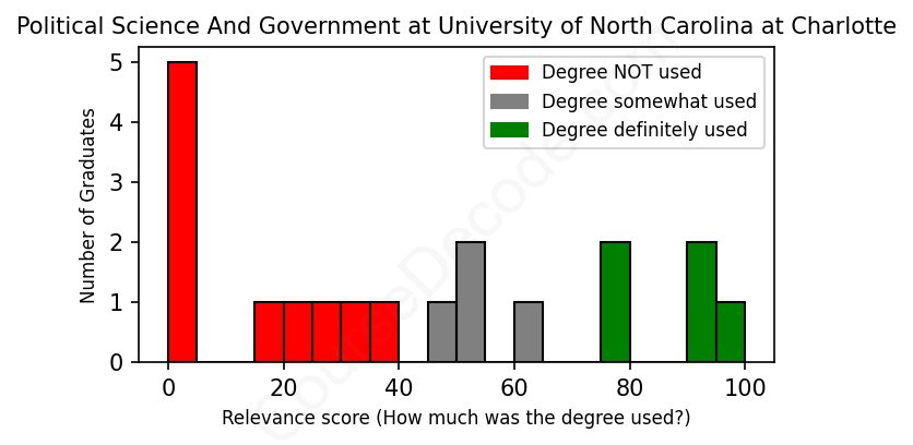First, some facts. Of the Political Science And Government graduates from University of North Carolina at Charlotte we've analyzed , here's how many have used (or NOT used) their degree in their career: