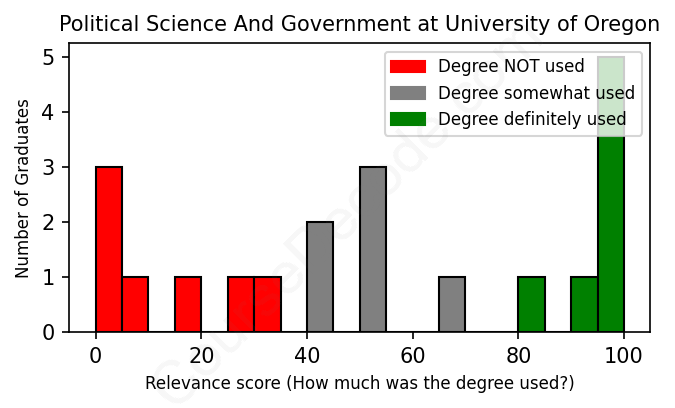 First, some facts. Of the Political Science And Government graduates from University of Oregon we've analyzed , here's how many have used (or NOT used) their degree in their career: