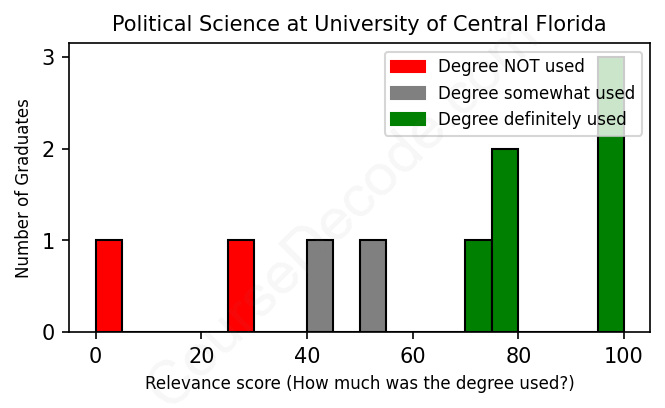 First, some facts. Of the Political Science graduates from University of Central Florida we've analyzed , here's how many have used (or NOT used) their degree in their career: