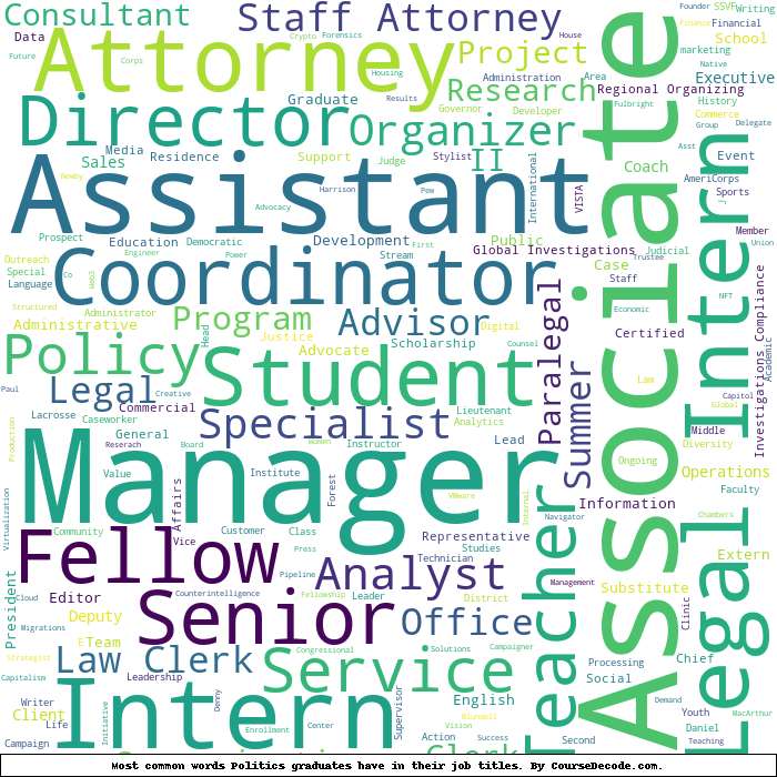 Here is a visual representation of the most common words in job titles for Politics graduates:
