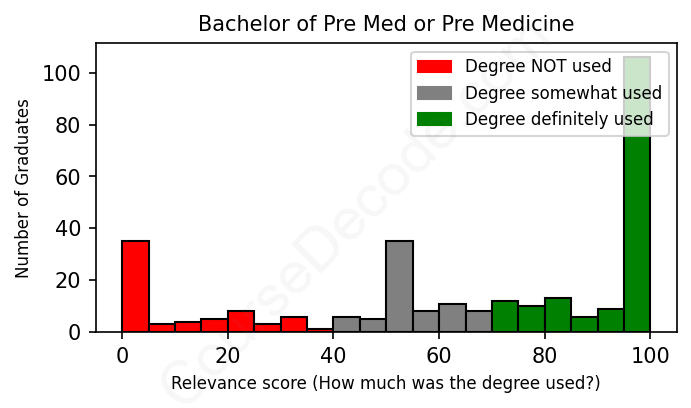 First, some facts. Of the Pre Med or Pre Medicine graduates we've analyzed , here's how many have used (or NOT used) their degree in their career: