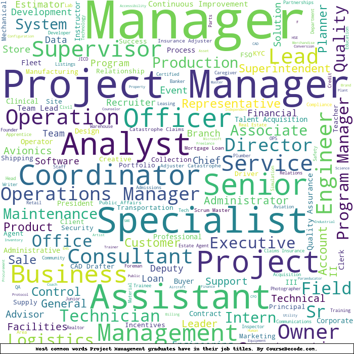 Here is a visual representation of the most common words in job titles for Project Management graduates: