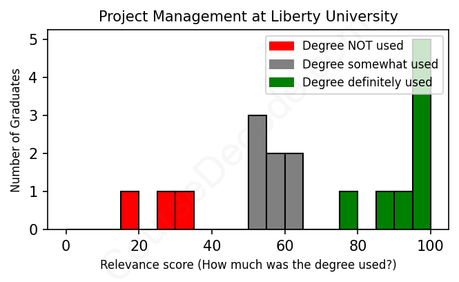 First, some facts. Of the Project Management graduates from Liberty University we've analyzed , here's how many have used (or NOT used) their degree in their career: