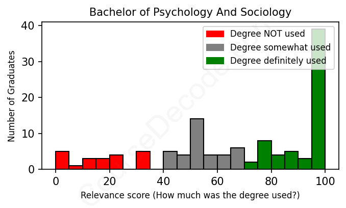 First, some facts. Of the Psychology And Sociology graduates we've analyzed , here's how many have used (or NOT used) their degree in their career: