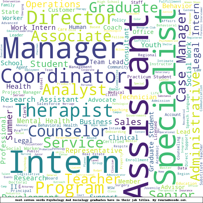 Here is a visual representation of the most common words in job titles for Psychology And Sociology graduates: