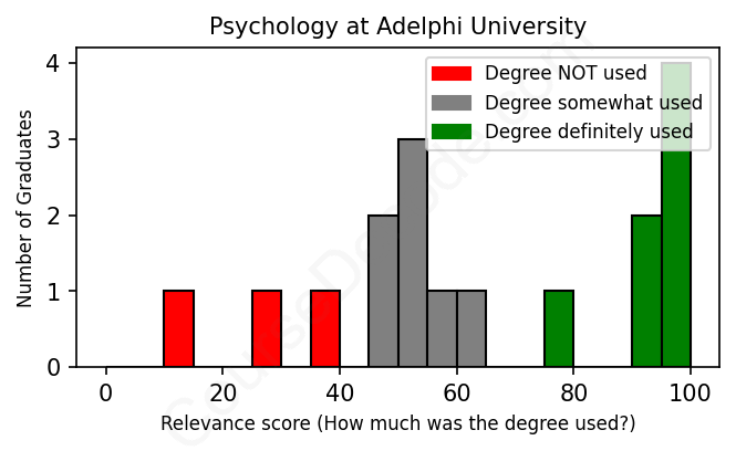First, some facts. Of the Psychology graduates from Adelphi University we've analyzed , here's how many have used (or NOT used) their degree in their career: