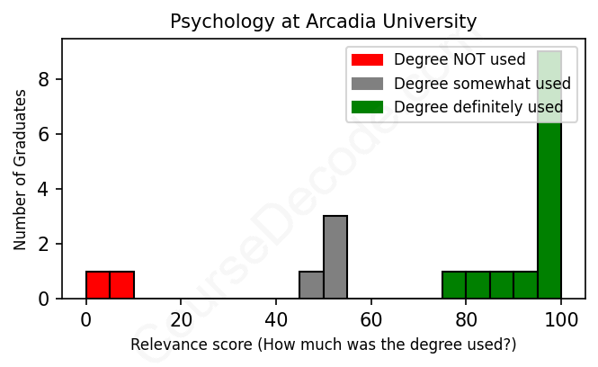 First, some facts. Of the Psychology graduates from Arcadia University we've analyzed , here's how many have used (or NOT used) their degree in their career: