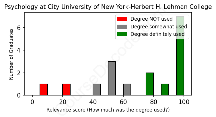 First, some facts. Of the Psychology graduates from City University of New York-Herbert H. Lehman College we've analyzed , here's how many have used (or NOT used) their degree in their career: