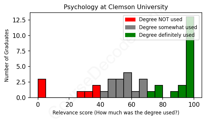 First, some facts. Of the Psychology graduates from Clemson University we've analyzed , here's how many have used (or NOT used) their degree in their career: