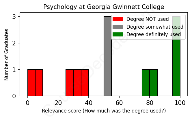First, some facts. Of the Psychology graduates from Georgia Gwinnett College we've analyzed , here's how many have used (or NOT used) their degree in their career: