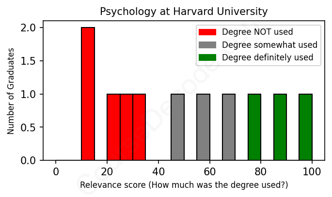 First, some facts. Of the Psychology graduates from Harvard University we've analyzed , here's how many have used (or NOT used) their degree in their career: