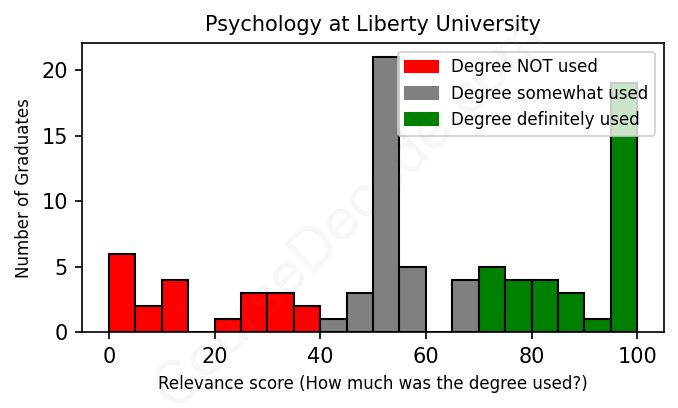 First, some facts. Of the Psychology graduates from Liberty University we've analyzed , here's how many have used (or NOT used) their degree in their career: