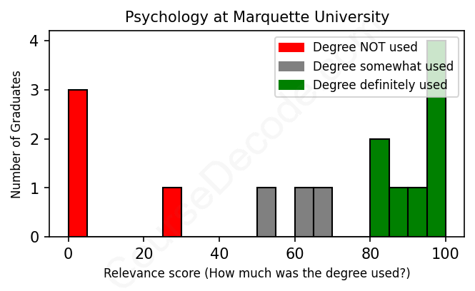 First, some facts. Of the Psychology graduates from Marquette University we've analyzed , here's how many have used (or NOT used) their degree in their career: