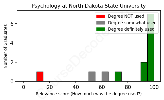 First, some facts. Of the Psychology graduates from North Dakota State University we've analyzed , here's how many have used (or NOT used) their degree in their career: