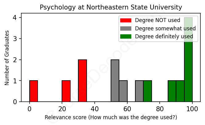 First, some facts. Of the Psychology graduates from Northeastern State University we've analyzed , here's how many have used (or NOT used) their degree in their career: