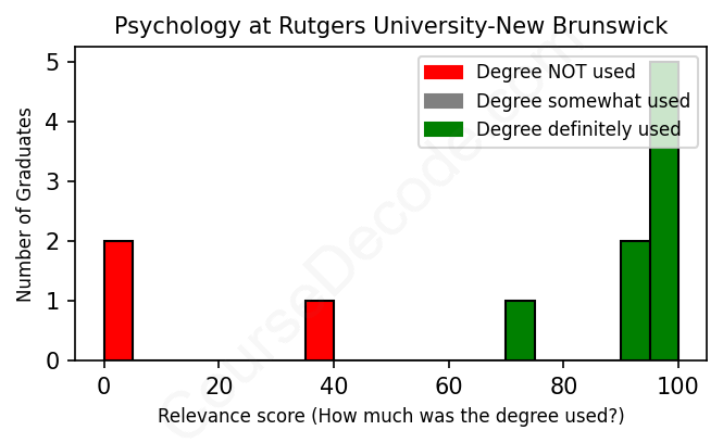 First, some facts. Of the Psychology graduates from Rutgers University-New Brunswick we've analyzed , here's how many have used (or NOT used) their degree in their career: