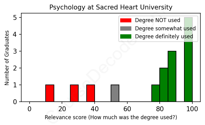 First, some facts. Of the Psychology graduates from Sacred Heart University we've analyzed , here's how many have used (or NOT used) their degree in their career: