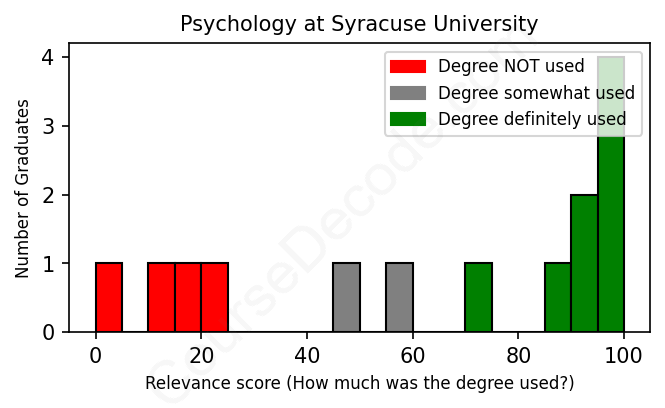 First, some facts. Of the Psychology graduates from Syracuse University we've analyzed , here's how many have used (or NOT used) their degree in their career: